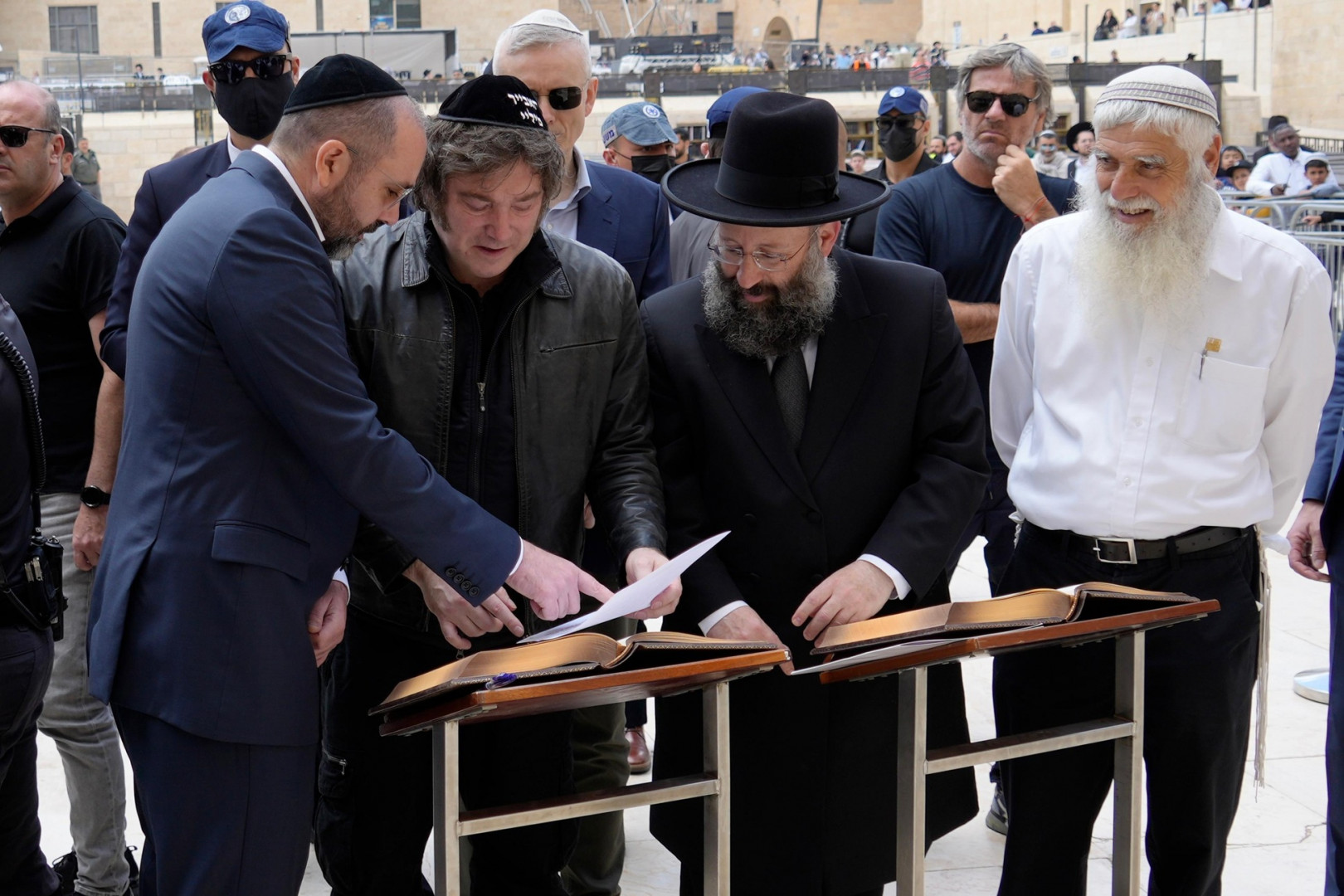 El Presidente llegó hoy a esa nación acompañado por la Secretaria General de la Presidencia, Karina Milei, y por el Canciller Pablo Quirno, y permanecerá allí hasta el martes en el marco de una intensa agenda que puso en marcha ni bien aterrizó, con una visita al Muro de los Lamentos junto al embajador argentino Axel Wahnish.